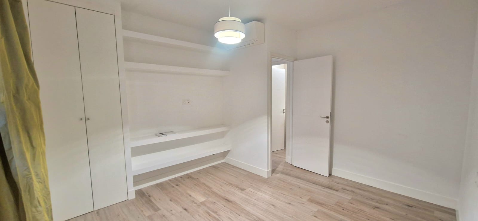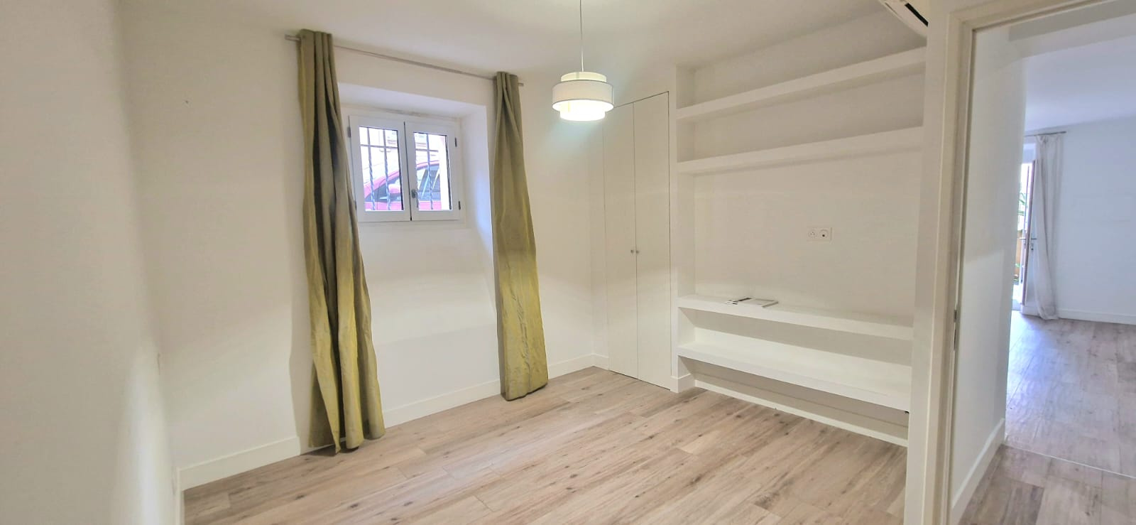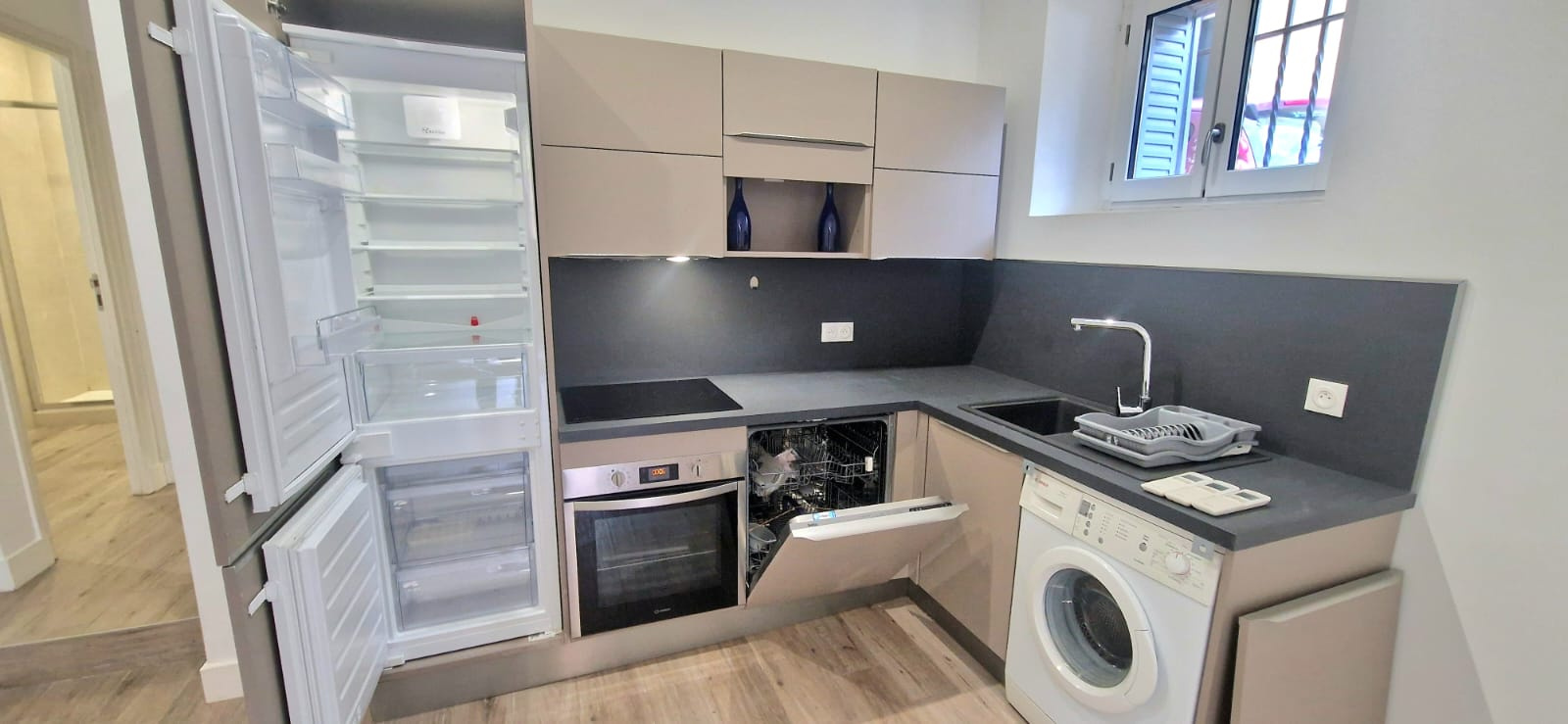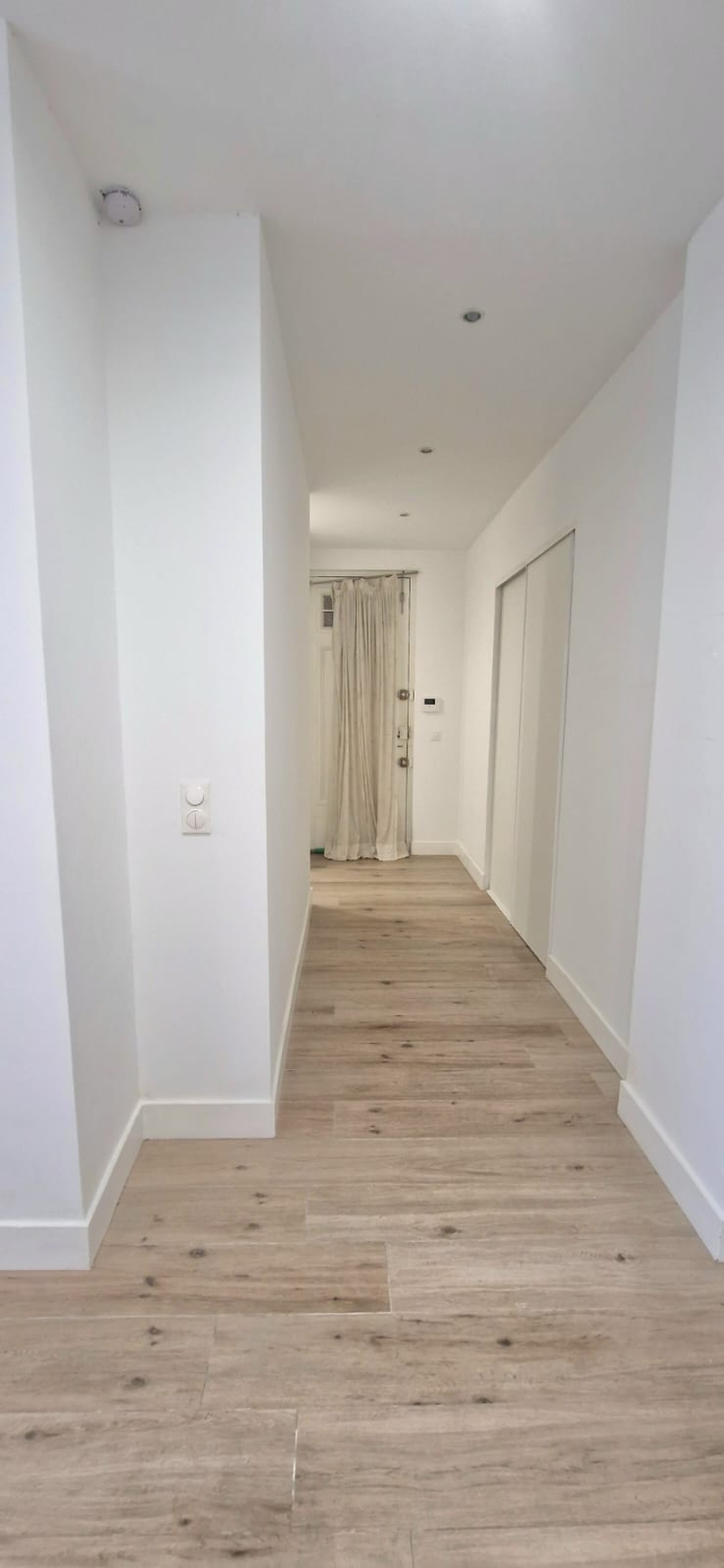 Les prestations sont de qualité : parquet bois clair, double vitrage, murs blancs, cuisine neuve, et belle hauteur sous plafond.