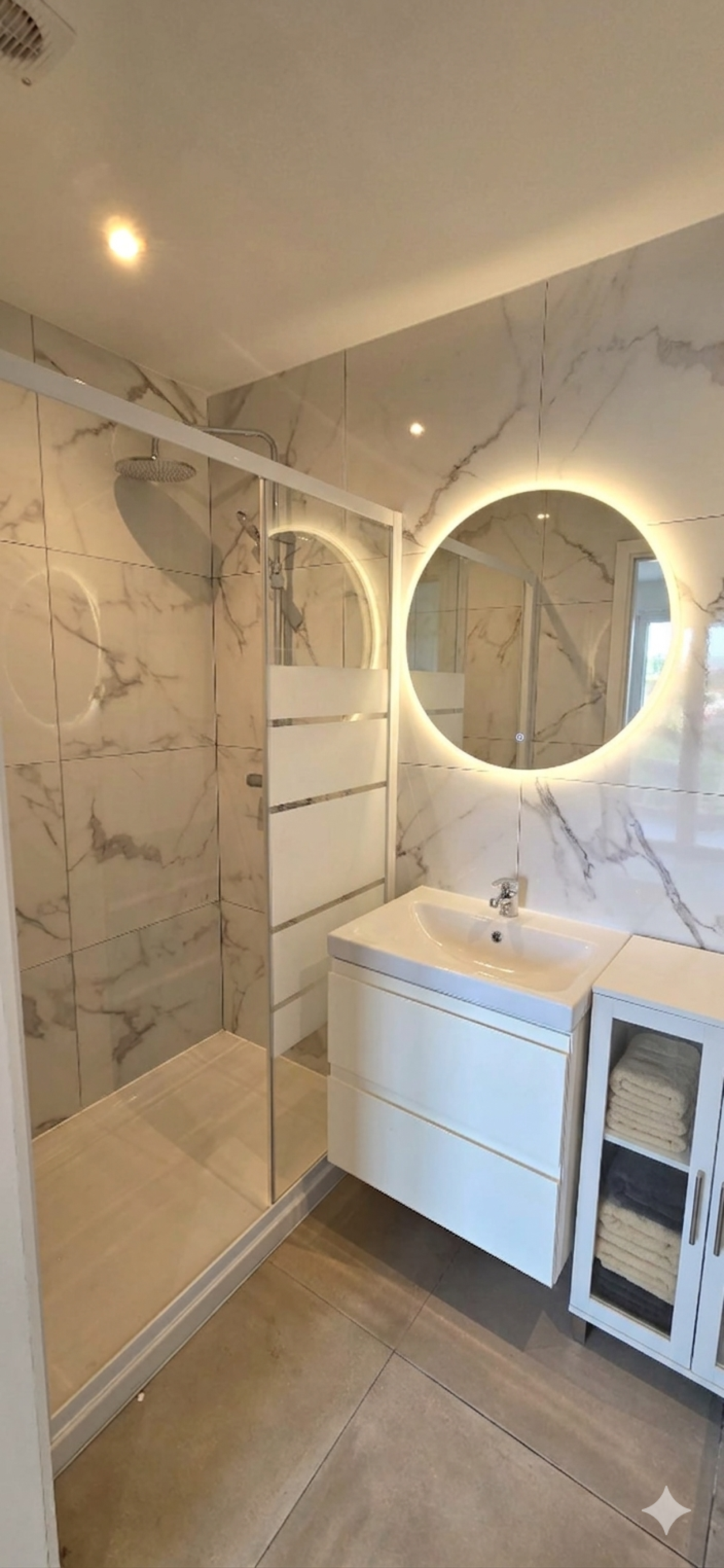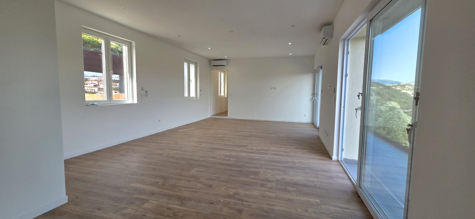Le bien :Appartement 4 pièces de 90 m² Neuf (prestations modernes et confort optimal) Double exposition Est / Ouest luminosité toute la journée Séjour ouvrant sur un grand balcon de 26 m²Vue dégagée collines + aperçu mer Espace nuit :3 chambres confortables2 salles de bains (idéal famille ou résidence secondaire) Stationnement :1 place de parking incluse