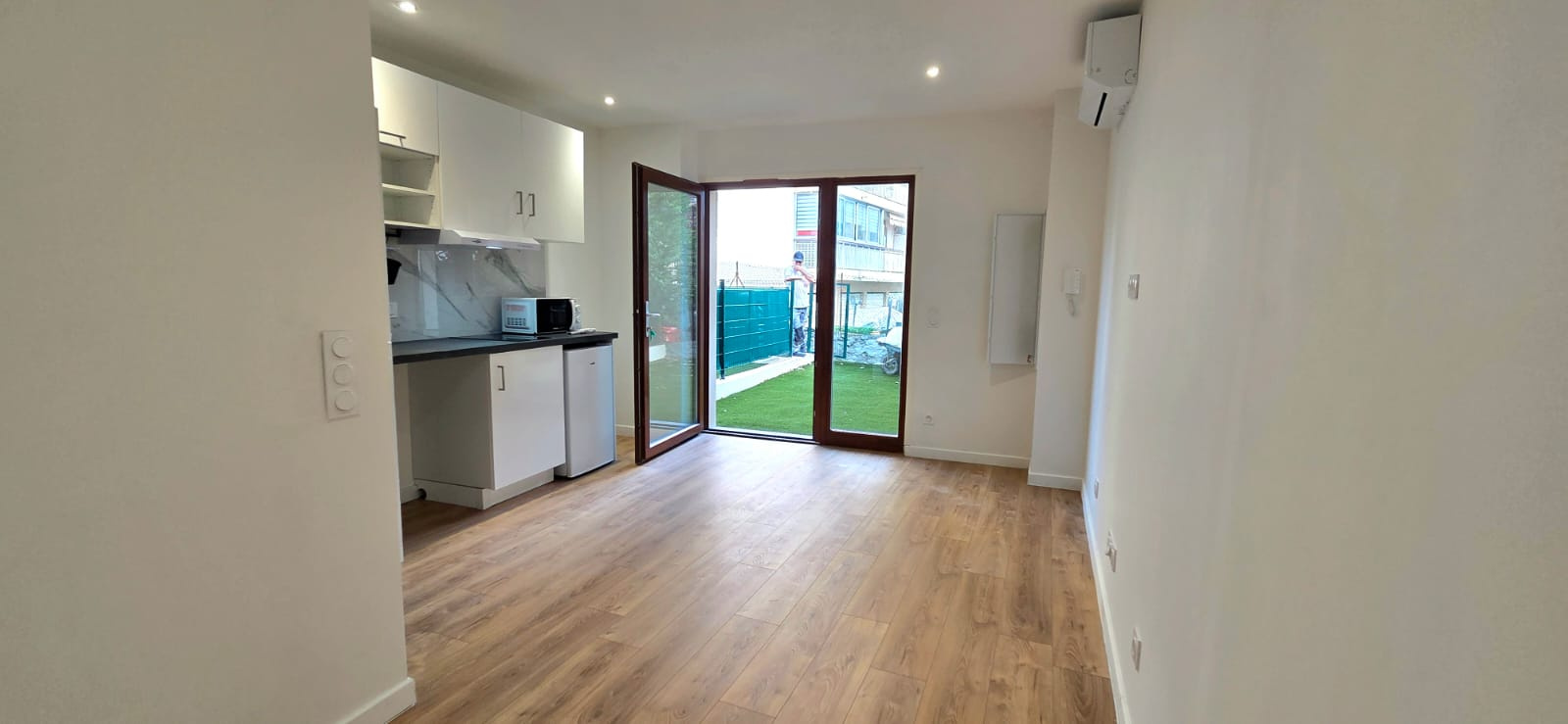 En Rez de jardin d'un bâtiment d'1 étage, cet appartement de 18 m² entièrement refait à neuf comprend un séjour avec un coin cuisine super équipée, une Alcove chambre ,une salle d'eau avec WC, un jardin de 25 m²